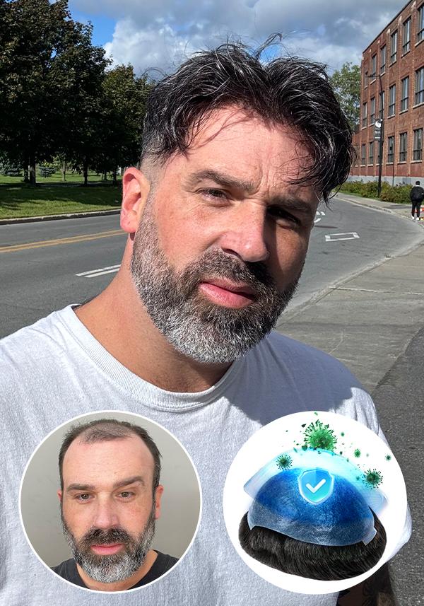 ZyroSen è un nuovo tipo di sistema antimicrobico per capelli pensato per chi desidera sia comfort che protezione. Certificato da CE, ISO, FDA e SGS, ZyroSen utilizza una tecnologia avanzata per combattere i batteri, il che aiuta a prevenire prurito, irritazione e altri problemi comuni dei normali sistemi per capelli. Questo lo rende un'ottima scelta per le persone con pelle sensibile. Progettato per un comfort duraturo, ZyroSen è morbido e naturale sul cuoio capelluto, mantenendo anche le aree più delicate comode per tutto il giorno.